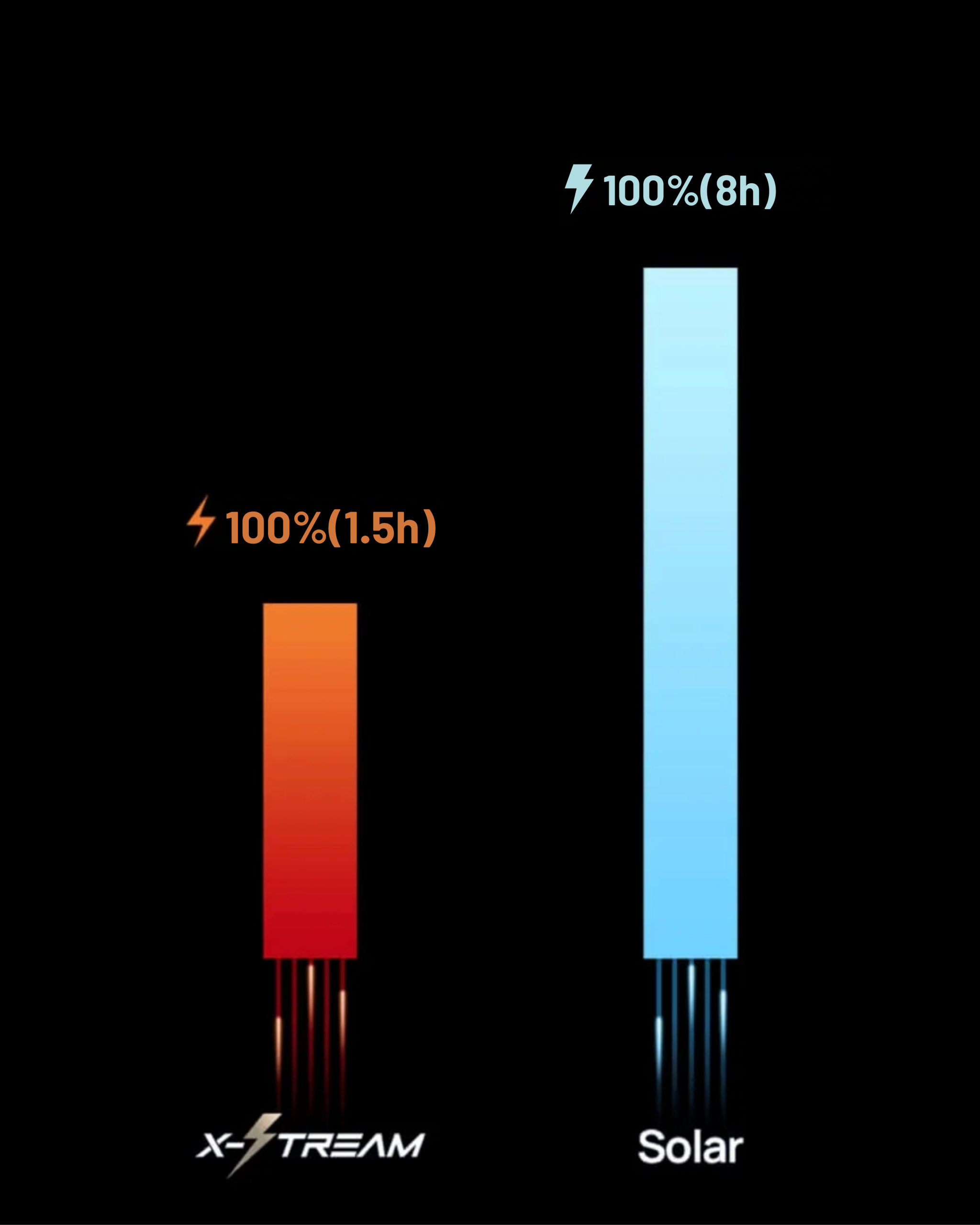 DELTA ชาร์จได้ตั้งแต่ 0-100% เพียง 90 นาที ด้วย X-Stream ซึ่งเป็นเทคโนโลยีการชาร์จสถานีไฟฟ้าแบบพกพาที่เร็วที่สุดในโลก