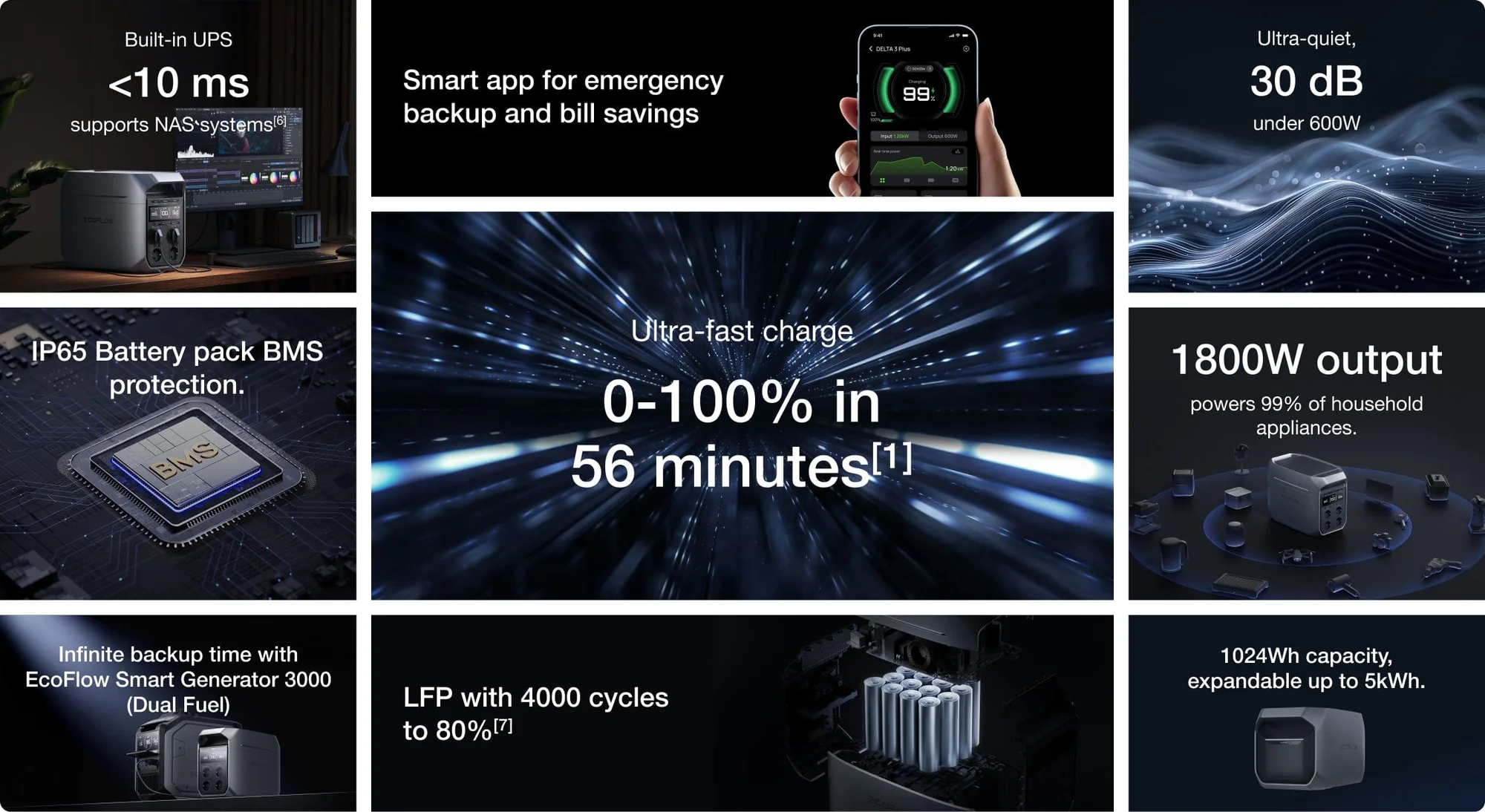 เปิดเครื่องได้เร็วกว่าพริบตา เมื่อใช้เป็นแหล่งพลังงานฉุกเฉินระหว่างไฟดับ DELTA 3  จะทำงานโดยอัตโนมัติและให้พลังงานแก่คุณในเวลาน้อยกว่า 10 มิลลิวินาที